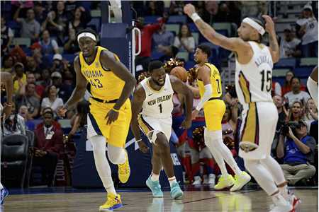 鹈鹕队首发:蔡恩-威廉森、布兰登-英格拉姆、乔丹-霍金斯、约瑟-阿尔瓦拉多、伊夫-米西