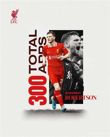 此役客战曼联,罗伯逊首发出战,这位苏格兰后卫迎来利物浦生涯各项赛事第300次出场。