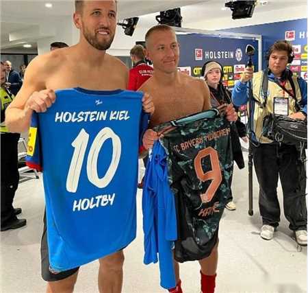 荷尔斯泰因基尔和拜仁慕尼黑一役,霍尔特比和凯恩在德甲赛场相遇,赛后,两人互换了球衣。